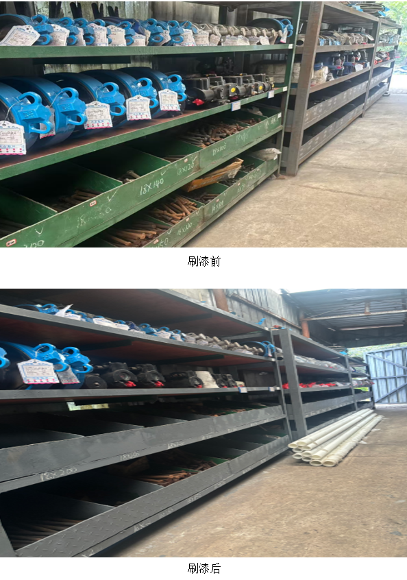 9月22日,經(jīng)過一個多月的作業(yè),備件庫房內(nèi)所有貨架已順利完成灰色油漆涂刷工作。煥然一新的灰色貨架整齊排列,顯著提升了庫房的整體視覺效果,倉儲環(huán)境也因此得到了大幅改善。從安全角度考慮,具備防腐防銹特性的灰色油漆能有效延長貨架的使用壽命,降低因貨架銹蝕引發(fā)的安全隱患;對日常管理而言,統(tǒng)一的灰色外觀使得備件分類區(qū)域更加清晰,便于工作人員迅速識別和存取備件,從而大幅提高工作效率。此外,整潔規(guī)范的庫房環(huán)境進(jìn)一步提升了公司倉儲管理的整體形象,為后續(xù)推進(jìn)標(biāo)準(zhǔn)化倉儲建設(shè)奠定了堅(jiān)實(shí)的基礎(chǔ)。